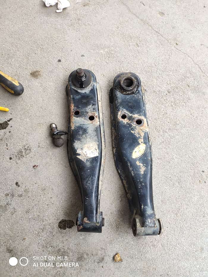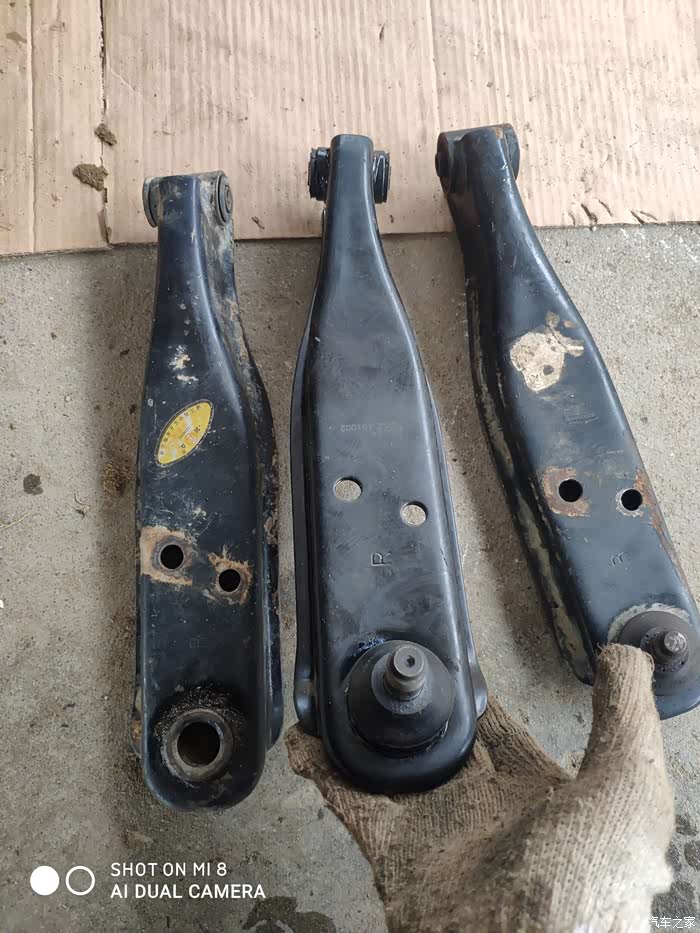 家里原来有些拆车件,拿出来比对了一下,中梁胶圈孔那里不一样,弯曲程度好些也差一点点。后来,特地去县城买的配件回来装的。看是一件简单的事情,但装起来挺费时间的,起初,不想拆下拉杆,后来不得不拆,因为根本装不进去,试过好多方法,都是不行。