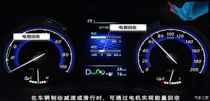 还有一个让我比较有兴趣的是,启辰D60EV宣传的能量回收系统。开始时我没能注意到,后来通过排挡向左切换尝试了一下,分成三挡回收,中档和强档回收相当厉害(仪表会有显示),但松开电门后的拖拽感比较明显,所以我基本用低档回收模式。当然你如果不做任何回收模式选择,回收能起作用,只是会比较少一些。当然如果足够的车速或者长下坡请下,中高档的回收模式不仅回收比较高效,而且还能辅助刹车性能。只是平时道路基本不会用到。但这套回收系统的自动化程度不错,而且对续航确实有提升作用。看剩余里程显示能明确看到回收条件下续航里程维持不动,甚至增加。启辰官方表示,车辆减速和制动时可达到最高23%回收效率,这比例甚至高于同门合资车轩逸纯电22%的回收效率,实际感觉也是对延长续航里程起了不小的作用。