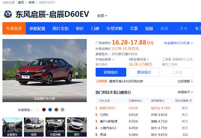 说到底,启辰D60EV对电池的续航里程,在目前技术水平上,做到了相对的优秀。从厂家公布的技术参数中,似乎对应并且印证网搜的资料。a、电池包容量高达58kWh;b、b、电池包能量密度高达171Wh/kg,高出同级平均值18%c、轻量化:航空级材料轻量化,储存58°电仅重39kgd、充电快:快充0-80%仅需41分钟。