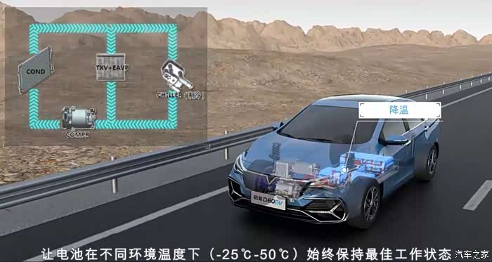 可能大家并不会注意到,但确实不容忽视的一点--电池温度控制。D60EV给我印象最深刻的是电池的温度控制。不管是在去山区道理时长时间的爬坡,还是大电流充电的时候,电池温度显示指针几乎丝毫没有动过。电池温度的管理对动力电池的充放电性能以及安全有着不可忽视的作用,因此在行车开始的阶段中我经常关注电池温度的变化,事实上最后证明我的担心是多余的。随手查询了一下D60EV热管理安全设计:电池包采用主动冷却方案即可保证电池保持在55℃的正常温度区间,一方面可直接规避“热失控”的风险,另一方面可大幅度提升电池使用寿命。热管理技术的实现方案有很多,D60EV采用一套自主开发的智能温控系统,采用50%水+50%聚乙二醇为冷却液的液冷/热系统,可实现根据电池温度智能选择高温冷却和低温加热的功能,其冷却效果和气密性及安全等级远高于普通EV的风冷方案。