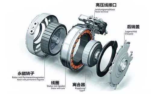 电动汽车EV的驱动电机--EV的发动机:电机是以磁场为媒介进行机械能和电能相互转换的电磁装置。新能源汽车上采用的驱动电机具备小型化、质量轻、高转速和高效率的特点。电机技术的关键点在定子、转子。转子即新能源汽车的主驱动电机,它承担了与新能源汽车运动相关的所有功能。EV的驱动电机分为直流电机、感应电机和永磁电机。毫无疑问,永磁电机因为具有较高的“比功率”、峰值效率和负荷效率外,其可靠性也比较好,且体积小,目前是被电动汽车广泛采用的电机。其中永磁同步电机,其偏硬的机械特性使它非常适合于需要调速的场合。而电动汽车对功率密度、可操控性等特点的强烈需求,也使得永磁同步电机特别适合电动汽车的应用场景。