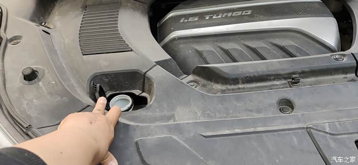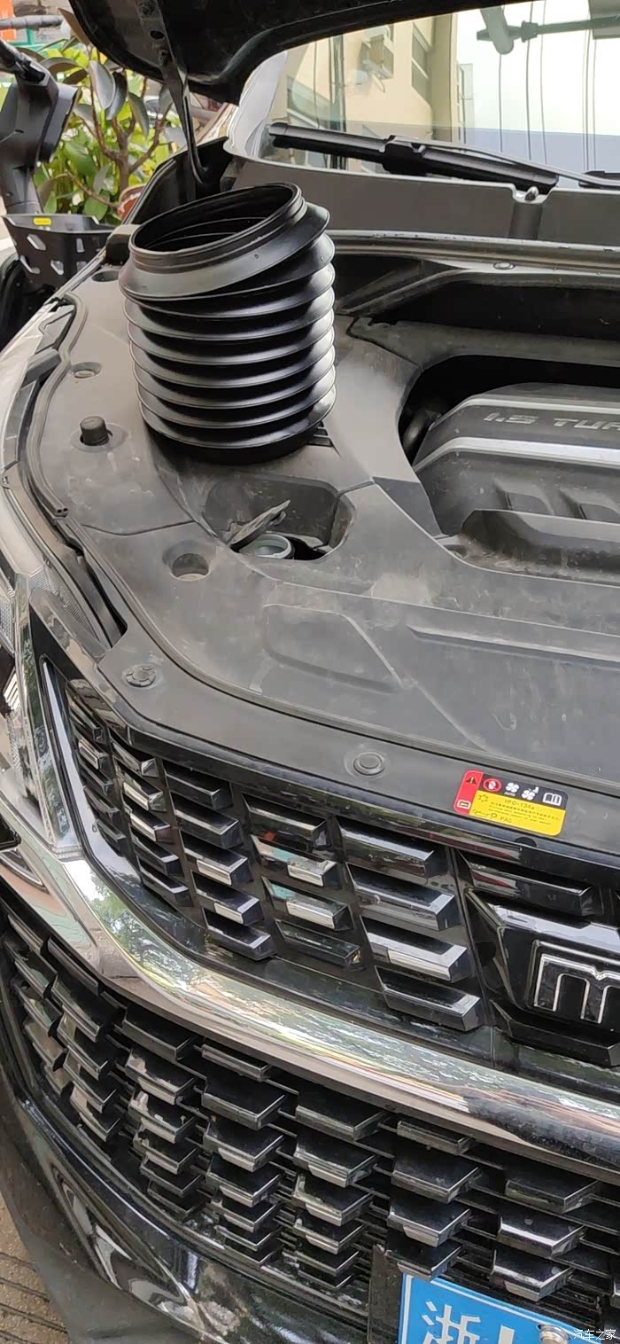 引擎盖就开了个小缝,手伸进去扣一下就开了
