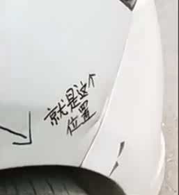 然而更让人觉得诧异的是这位小学生还用黑色的笔在车上进行划线引导,当指引到车子被碰撞的地方时,写上了“就是这个位置”几个大字,方便车主找到。