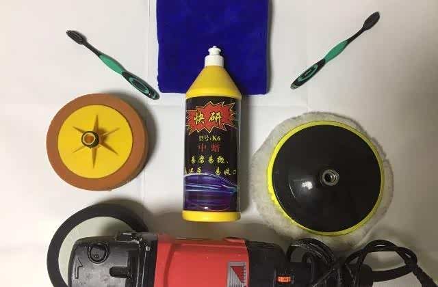3、抛光蜡(市场上进口国产的各种蜡鱼龙混杂,建议用3M、快研、G3等这几个品牌的水性汽车抛光蜡,这里建议用水性汽车抛光蜡是在于相对油性汽车抛光蜡来说水性抛光蜡更容易上手后研磨收蜡,且分别是粗蜡配套硬盘(在这里初学者不建议使用,因为粗蜡力度较大加上和硬盘的研磨能力太强,持抛光机进行抛光时的挤压力度和稳度控制不好会对漆面进行磨损)、中蜡配中盘(深色车用快研水性汽车抛光蜡K5,浅色车用快研K6这是湖南都峰科技针对浅色车专为研制 )、软盘抛镜面蜡,这会让抛车变得高效又随心所欲,全系列快研汽车蜡具有易磨、易抛、易祛痕、有效的防静电、防水、防尘、防紫外线等多效合一的功效,面世以来越来越倍受专业汽车美容店和二手车翻新店的青睐及首选。