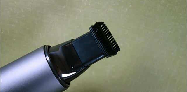 这是毛刷吸头,很适合在座椅套等容易粘东西的地方,一边刷一边吸,达到更好的清洁效果,从实际使用来看,有这两个吸头是足够用途车内的清洁工作了。当然,在家里用来清洁电脑机箱、键盘等也是很好用的。