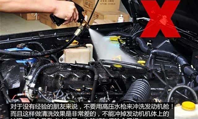 的确,许多车辆的使用说明书都有明文规定:发动机舱不能直接用水冲洗。因为用水直接冲洗发动机舱这样的清洗方式是完全错误的。而且用高压水枪冲洗发动机不会有太好的效果,因为发动机舱内很多零件上粘上的东西不光是泥水和浮土(特别是气缸盖附近),而是积累了很长一段时间的油泥,所以单纯用水是冲不掉的,另外如果不了解发动机结构的话,盲目地用高压水枪来回冲洗还会造成发动机舱内其他零件受损,比如点火线圈、保险盒等部位。