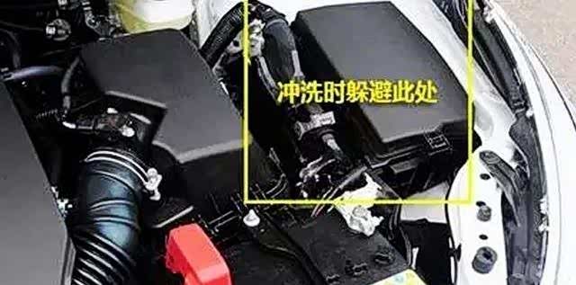 有些车发动机舱内的保险盒上会有提示,大意是避免高压枪冲洗此处。虽然有做防水处理,一般雨水没什么问题,但高压水枪的压力较大,为以防万一。因此清洗发动机舱时,要尽量躲避行车电脑及外保险盒区域。