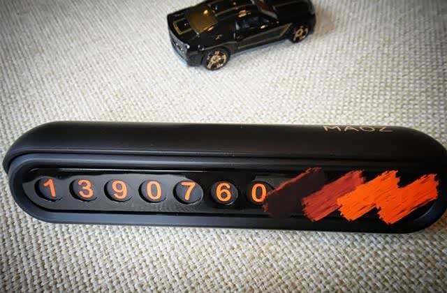 PUSUNG朴行MAOZ临时停车牌放置在车辆前挡风玻璃下,美轮美奂精致有档次,橙色号码在黑底衬托下清晰可见,停在正常车位时,下车前随手可以关闭,再也不担心手机号码隐私泄露,需要注意的是粘贴停车牌底座的位置一定要远离汽车安全气囊。
