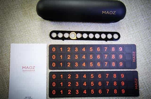 PUSUNG朴行MAOZ临时停车牌全部产品包括停车牌主体、黑色铁片圆孔盖板、说明书、两片0至9的六份磁性数字贴片,磁性贴片已分割好,非常容易抠取,六份数字已充分可以完成客户手机号码的搭配,如有土豪有八位同号码的估计需要定制多一份磁性贴片。