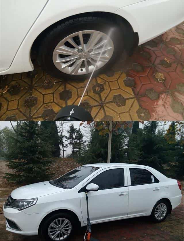 用高压直射模式来冲洗车胎,因为这种模式是水压最大的一种,冲洗力度强劲,可以很轻松地冲去车胎纹理中的的小石子哦!所以说每个出水模式都是一种不同的冲洗效果,只要旋转喷嘴,就可以随意变换。看最后清洗完的爱车,焕然一新咯,不管是车身还是车胎都洗得非常干净,比洗车店里洗的还要干净许多呢!