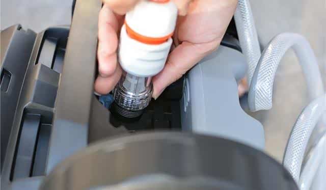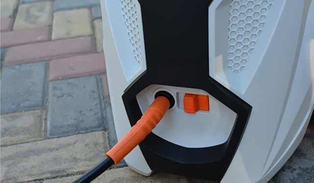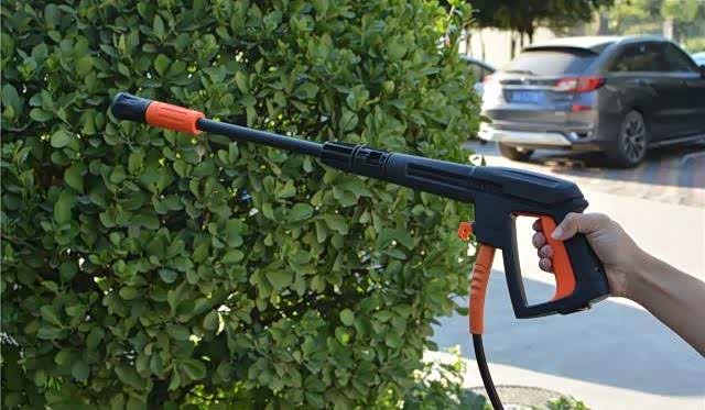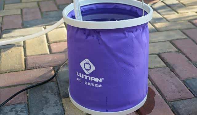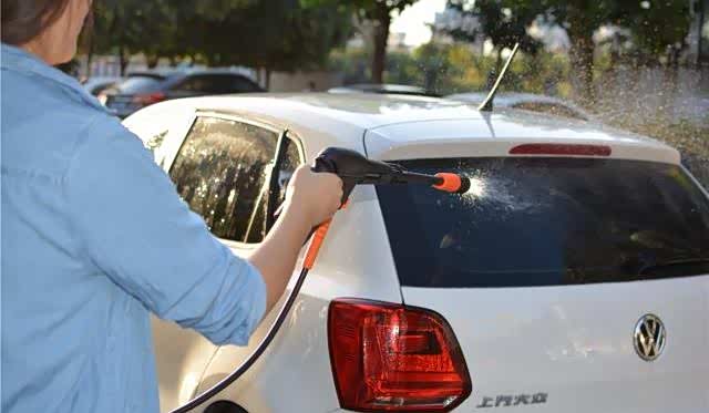 如果不方便外接水管,直接打一桶水,把入水管的一段插入即可。做完这一切,我们就可以开始洗车啦。