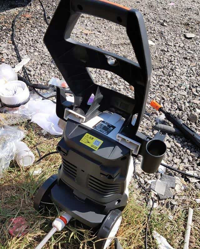 在使用过程中我发现,这款绿田洗车机的压力是非常大的。所以在使用的时候一定要注意枪口的方向,对车不对人。然而正是因为这样强大的压力,才能够有效的保证轻松的把车辆冲洗干净。