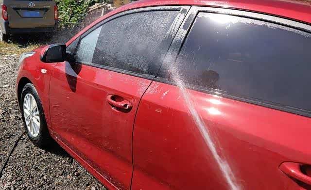 首先使用常规扇形枪头进行全车辆的清洗操作。再按下班级的瞬间可以感受到枪口中喷出的高压水流,实际使用时是能够清晰地感受到那种后坐力的。