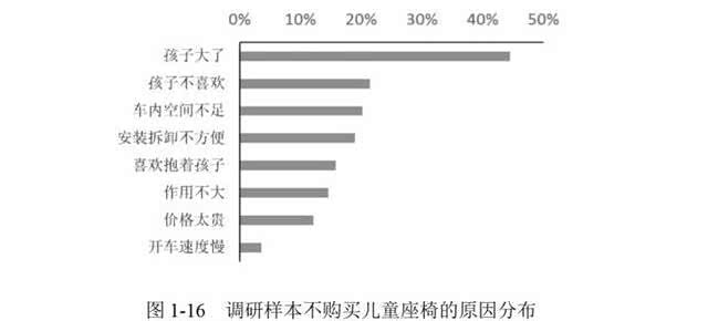 一项调查显示,大多数家长没有专门为孩子配备汽车安全设备,少数家长对儿童安全座椅了解不多,这也符合儿童出行选择调查中的这种情况。这说明,中国的儿童汽车座椅并不像家用汽车那么受欢迎。一般家长都让孩子坐在后座,家长一般在后座照顾,安全座椅的实际效果在家长看来并不是那么大。造成这种现象的原因是什么?
