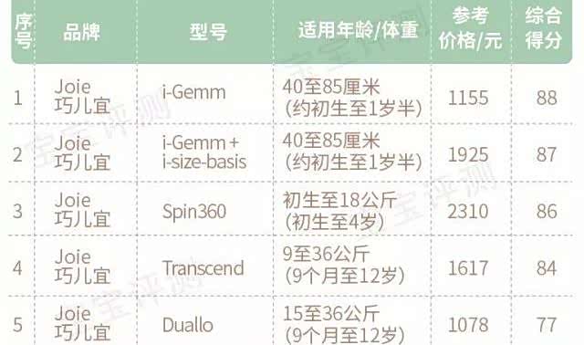 Joie巧儿宜这5款产品都是德国商品检测基金会在2016至2017年检测的产品,4款产品表现优良。