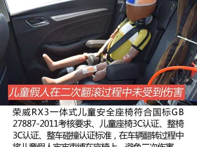 在车辆翻转过程中,荣威RX3一体式儿童安全座椅将儿童假人牢牢束缚在座椅上,避免了二次伤害。