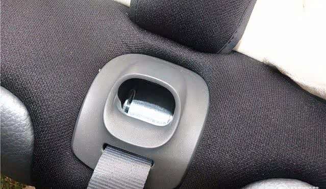 此为车用安全带安全锁的位置,安全带横穿后锁好,提醒大家安装座椅的时候为了提高行车过程中安全椅的稳定性安全带必须固定在安全锁中。