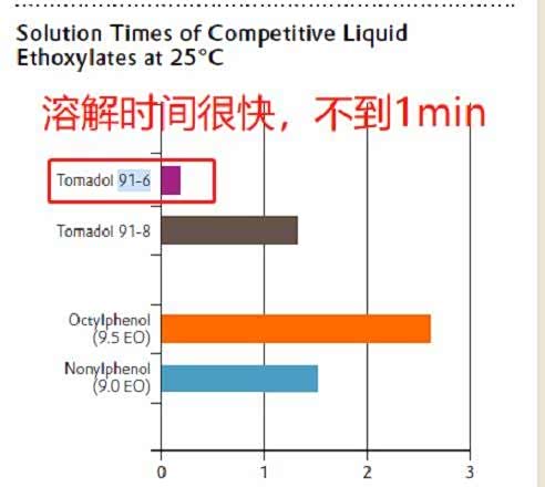 TOMADOL 91-6 不但有出众的清洁和脱脂能力,还可以通过减少使用量来降低成本,因为他的清洁效果通常远远好于其他原料,环保近乎于 0 的 VOC,生物降解性非常好;在室温下具有较低的粘度,较大的流动性,冬天做产品时原料不会凝固,使用方便;有很快的溶解速度,不需要升温溶解就可以迅速溶解;