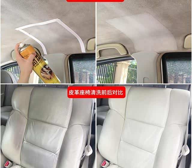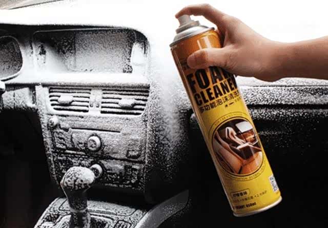 我就去看了旁边正在进行内饰清洁的一辆车,发现洗车小哥在用一种泡沫状的东西在清洁。我上网一查才了解到这是专用的内饰清洁剂,我看他也只是将内饰清洁剂喷上去再一刮就干净了。