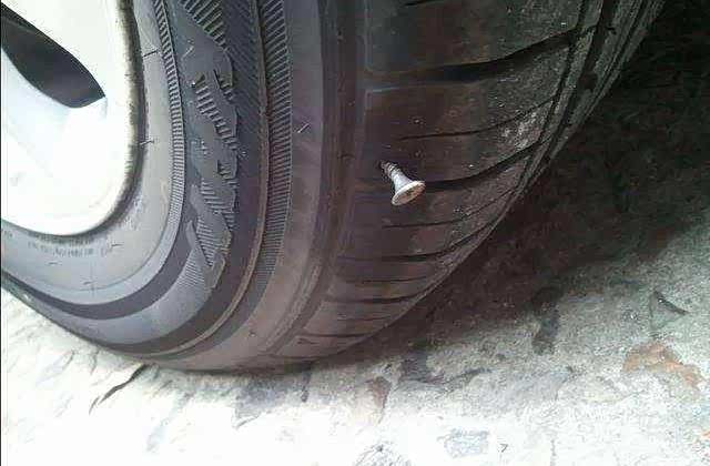 轮胎被扎,泄压严重或直接爆胎漏完
