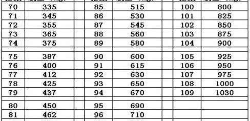 最大胎压与最大承载重量: