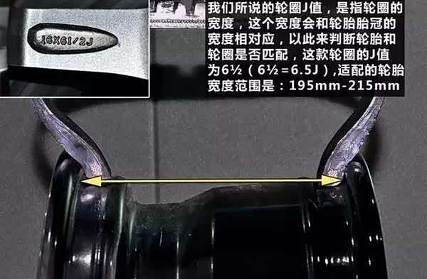 J值就是轮圈的宽度相对应轮胎的宽度的数值,一般来说,如果是在不更换轮圈的情况下对轮胎宽度进行升级,那么升级宽度应以不超过原厂轮胎宽度的10%为佳。比如说:原车轮胎宽度是195mm的,那么升级范围就应该是205mm,还需要把轮胎的扁平比来降低一个型号,比如原来的扁平比是60,应更换为扁平比55的轮胎。一般不建议超出范围的轮胎升级,那样会对轮胎胎侧造成额外磨损,缩短轮胎使用寿命。