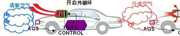 这类系统能自动切换内外循环系统。在汽车的车头安装的空气质量传感器,在汽车行驶过程中随时检测车前的空气质量,当前方空气质量状况较差时,AQS系统会自动切换内、外循环,有效阻挡PM10颗粒和PM2.5颗粒等车外空气中的灰尘颗粒物进入车内,避免污染空气进入车内。而在汽车前方空气质量较好时,汽车会自动切换至外循环,让新鲜空气进入车内,增加车内氧气含量。但AQS系统对无色有害气体反应迟钝。