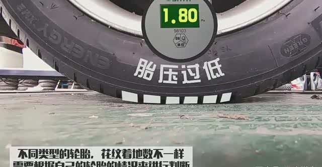 在没有胎压监测的车辆上面,你的轮胎气压是否正常,这个时候就需要你观察好这个点,那就是汽车和接触的花纹来作为判断依据,根据车辆大小和车辆轮胎尺寸不同,我们胎压正常的时候,轮胎和地面接触面,通常会在4-5个花纹(花纹就是轮胎表面凹槽,轮胎的磨损情况也是看这个凹槽)这个样子,你的车辆到底是四个还是五个呢?你就可以等胎压正常的时候进行观察,然后记住。如果你车辆胎压不足的时候,接触面就会超过6个花纹;当你车辆胎压过高的话,接触面就会低于4个花纹。当发现不正常的时候,就驱车前往维修店,通常维修店都不会收钱。