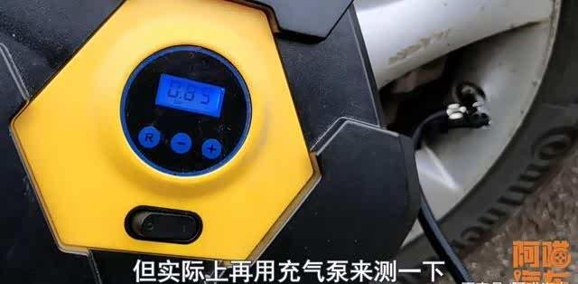为了测试胎压监测的数据喵哥又用充气泵测了轮胎的数据,结果测出来胎压只有0.85bar,为了进一步验证胎压监测的可靠性喵哥把车子往前开了15米再等待,看这个胎压监测多久会更新到现在的胎压状态,但是喵哥等了足足5分钟,胎压监测屏幕它没有任何显示也没有任何更新。
