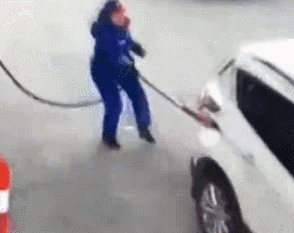 在网络上有这么个段子,司机进加油站加油,加好后没等油枪拔出来就踩了油门,结果直接带着油枪走了。而这样的马虎司机,在现实生活当中并不是没有。大家都知道,戏剧源于生活嘛。这不,近日,在台金高速永康服务区加油站就发生了这样一幕。