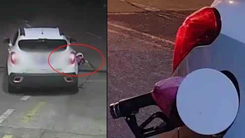 随后,王女士将车停在了硬路肩上,坐在副驾驶位置的王女士的妹妹下车去查看情况。当看到油箱上挂着的加油枪时,她当场就愣住了。