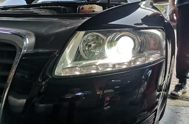 奥迪A6车灯改装双光透镜完成,在不改变原车线路,原车外观的情况下实现舒适安全的照明效果,为夜间行车提供了安全的保障!让您夜间行驶乐无忧!