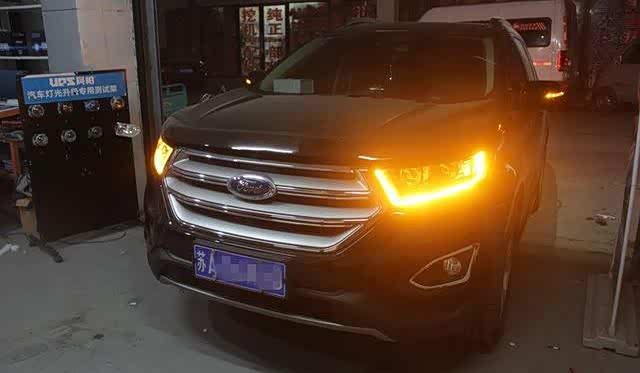 改装车灯更换LED大灯总成之后,日行灯非常漂亮。