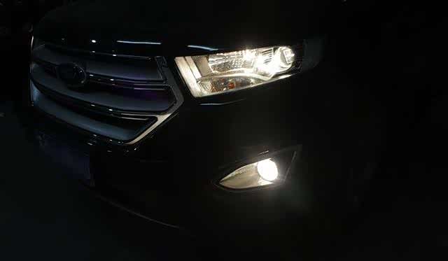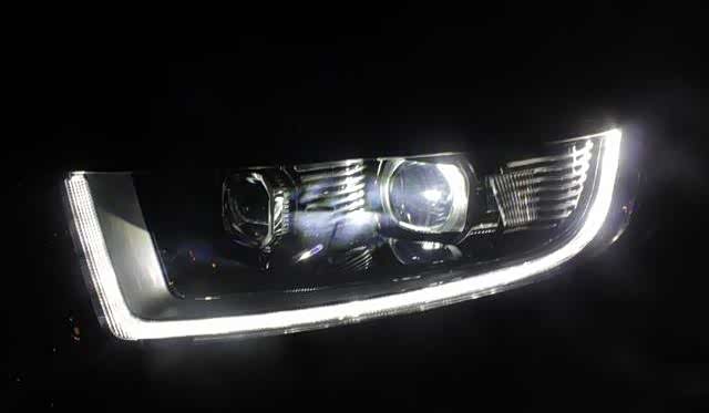 大灯整体在夜间看起来非常有特点,包边日行灯加LED透镜,非常好看。