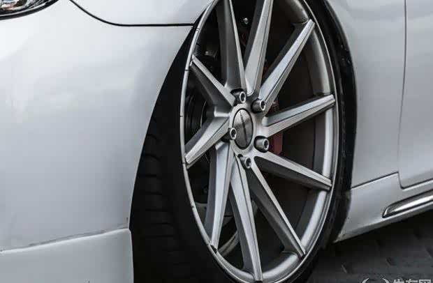 HellaFlush改装的另一个重点就是轮圈的选择,本次车主选择了美国著名轮圈品牌VOSSEN,而车主选择的这款19寸CVT轮圈采用单片低压铸造工艺,轮圈条幅由内向外成放射性扩散,其最大的特点就是在行走状态下,左右两侧轮圈则为逆时针与顺时针方向旋转相当个性。