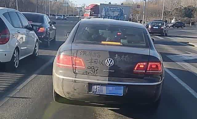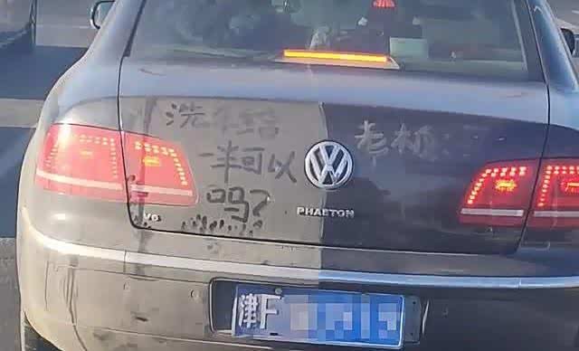 仔细一看,在车尾我们也可以看到几个字,那就是“洗车给一半可以吗?”不得不说,这一个大众辉腾的车主还是非常调皮的,没想到竟然用这种方式和大家开了一个玩笑,证明自己没有钱洗车,但是一些网友看到这里更是嗤之以鼻:都有钱买得起一款辉腾了,难道还差那几十块钱去洗车吗?