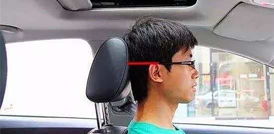 现在很多厂商会尽量将头枕设计得很舒服,但头枕在大部分情况下都只是一项安全配置。头枕的正确调节高度是将头枕中央与耳朵上方齐平,头部中间对准头枕中央,这样在受到冲击时,头枕最柔软的的部分会给予头部安全保护。