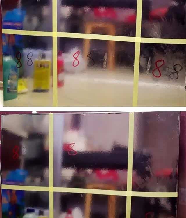 因为在自己车上做这个实验要被老婆抓住跪键盘(混合轴的那种),所以我找了一块玻璃,贴身汽车专用外观改色膜来模拟。
