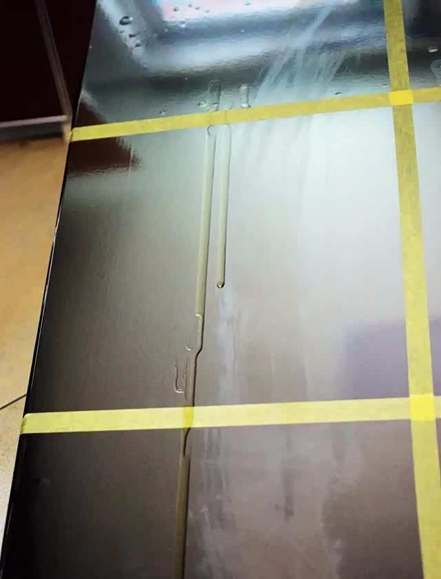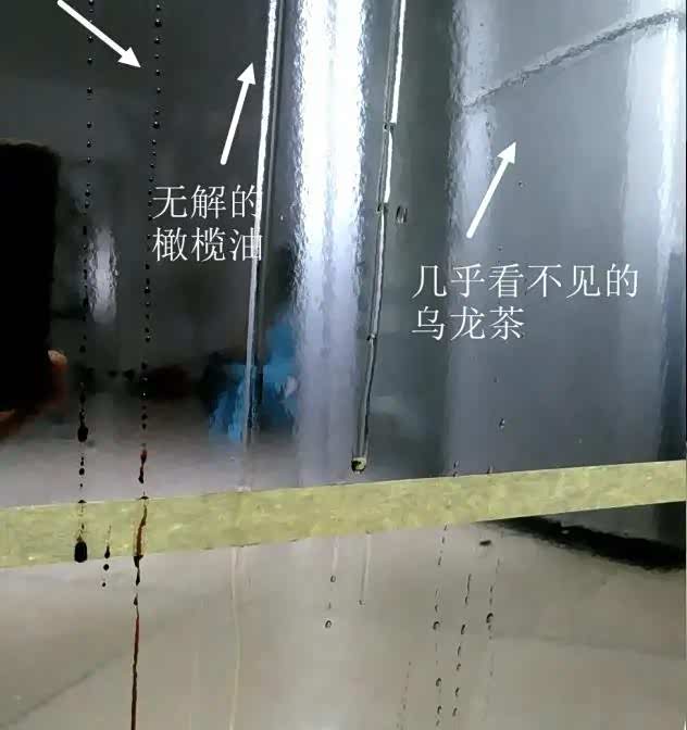 粘稠的老抽在大凤区域变成点状,而下面冰膜区域是非常细的条状。老抽测试大凤胜出。橄榄油测试,还是大家一起扑街。乌龙茶部分,大凤区域几乎全部流走,而冰膜区域还是有部分水珠残留。乌龙茶测试大凤胜出