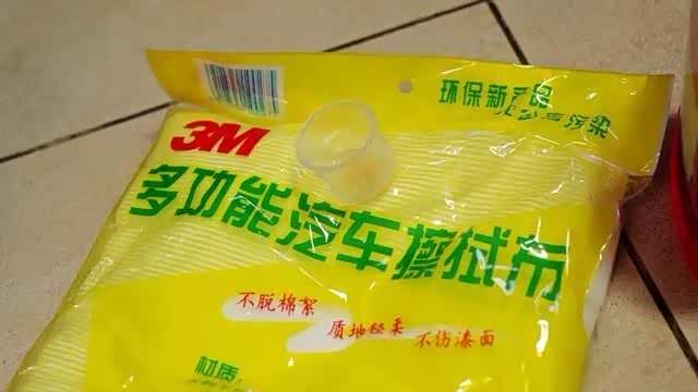 因为等不了洗车海绵的清洗和干燥时间,洗车采用3m的一次性汽车擦拭布,至于取量配比,就用儿子的口服液量杯: