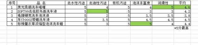 手忙脚乱的一番清洗之后(一个人独自进行,所以缺失了过程照片),发现对于水性笔(水性污迹)和干鸡蛋液(有机污迹),所有的洗车液效果都不错,同时各种清洗液的润滑度以及泡沫,差距都不是太大,最大差异还是出现在去油能力(对油性污迹的清洗)上。SOFF99去虫胶鸟粪洗车液效果一枝独秀,可以完全清洗去油性笔的痕迹,效果媲美去油王者——洗洁精。