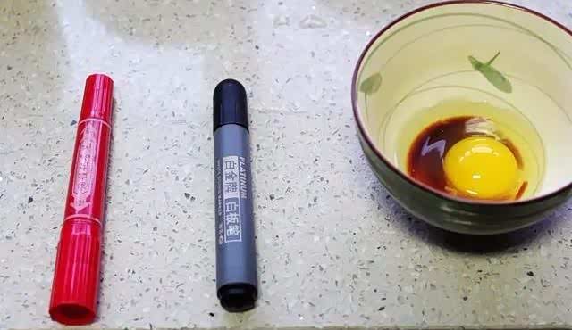 油性记号笔(油性污迹)、水性记号笔(水性污迹)、拌入生抽的鸡蛋液(模拟虫胶等有机污迹)