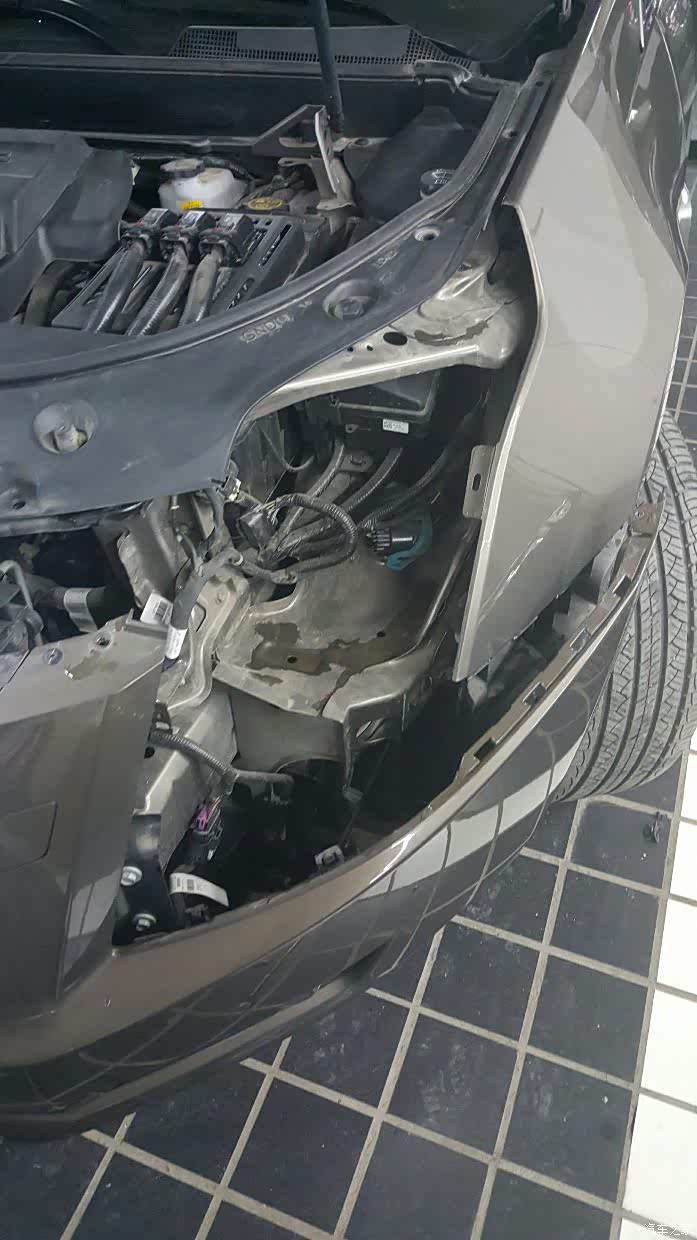 还好是熄火滑行撞过来的,油漆一点点划痕,找交警!他全责!到4儿子店,喷漆加保险杠里面卡扣,拆装费2千元!我没有喷漆!钱留那里,以后用!