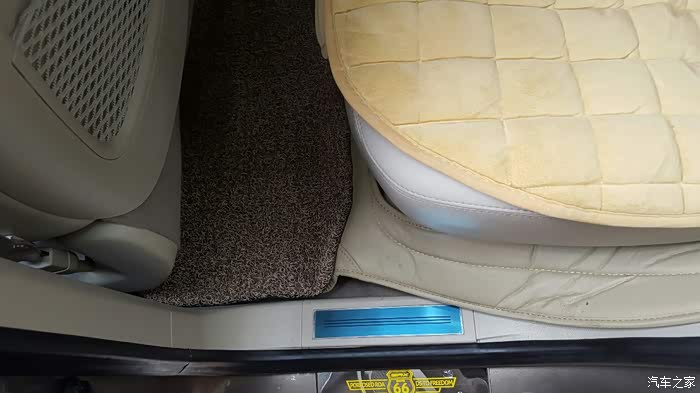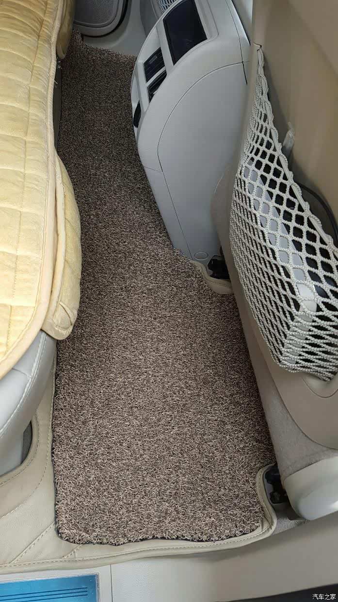 后座的脚垫效果。右边网兜有个空气净化器淘宝花了500大元!插在旁边点烟器就可以用了!感觉美帝进口车,环保不错,气味很少。