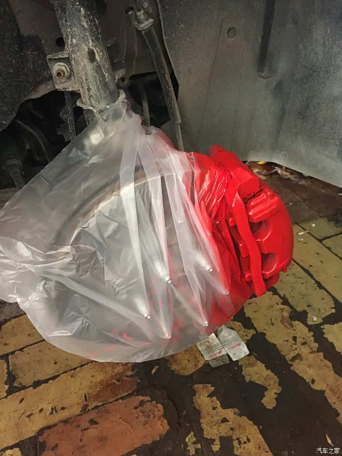 喷红卡钳!高温油漆!施工朋友告诉我!四个车轮螺丝都是松的,未上紧!他奶奶的,4儿子还是墨西哥装配问题?