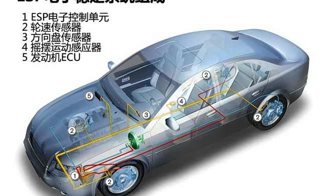 ESP指车辆车身稳定主动控制系统,结构包括ESP控制模块(俗称ESP电脑),以及轮速、转向、横向作用力等各个传感器。这些传感器多以每秒25组的高频率实时采集车辆的各种信息,这些信息会系数反馈至ESP控制模块进行分析;如果车辆在运行中出现车轮打滑或者即将侧滑失控,此时控制模块会激活ABS/EBD等各项单独的配置,通过对不同车轮输出不同的制动力,以减速角度的“对冲”保证车身不侧滑,简而言之是ESP能够预防车辆失控,功能如下。