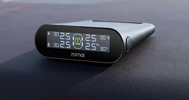 我们来看主机,70迈胎压监测仪采用的是TPMS安全保护系统,能做到主动报警,关注这你的驾驶安全。数据实时传输,可以做到高压低压报警、高温报警和漏气报警。使用进口芯片,数据反馈更快,蓝牙连接更稳定。