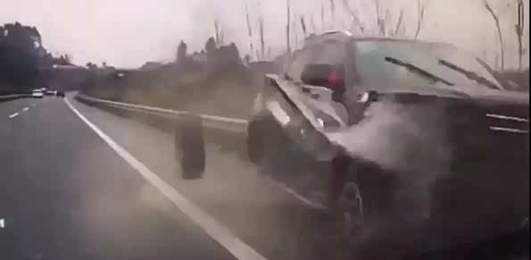 千万不要期盼,这种答案是我们谁也不想见到的,高速上就发生了这样的一起事故,一辆SUV后面的轮子在行驶的过程中突然从车上脱落了下来,最后还和后面的车来了一个亲密接触,等到接触之后倒到了路旁的护栏跟前,而这两SUV最后也因为后轮的脱轨直接撞上了前面的护栏,所以当我们开车的时候一定要做好下面的检查。