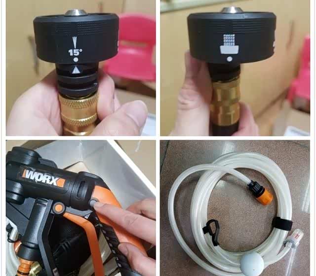 洗车机各部件均采用快速接头,将接头稍用力插入,旋转接头便可锁定,十分便捷,数秒钟就可以实现配件转换。