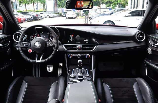 点评:GIULIA整体内饰给人感觉便是驾驶者中心。中控台布局便是采用不对称的设计,明显偏向驾驶者,这一点有别于德系品牌。内饰采用了大量的实木、拉丝铝材、碳纤维材料甚至采用所谓的意大利真皮材料,营造出较强的运动氛围。方向盘是内饰的最大亮点,与法拉利相似的设计逻辑给了驾驶者很强的感官刺激,尤其是位于方向盘上的一键启动按钮,是它的精髓所在。